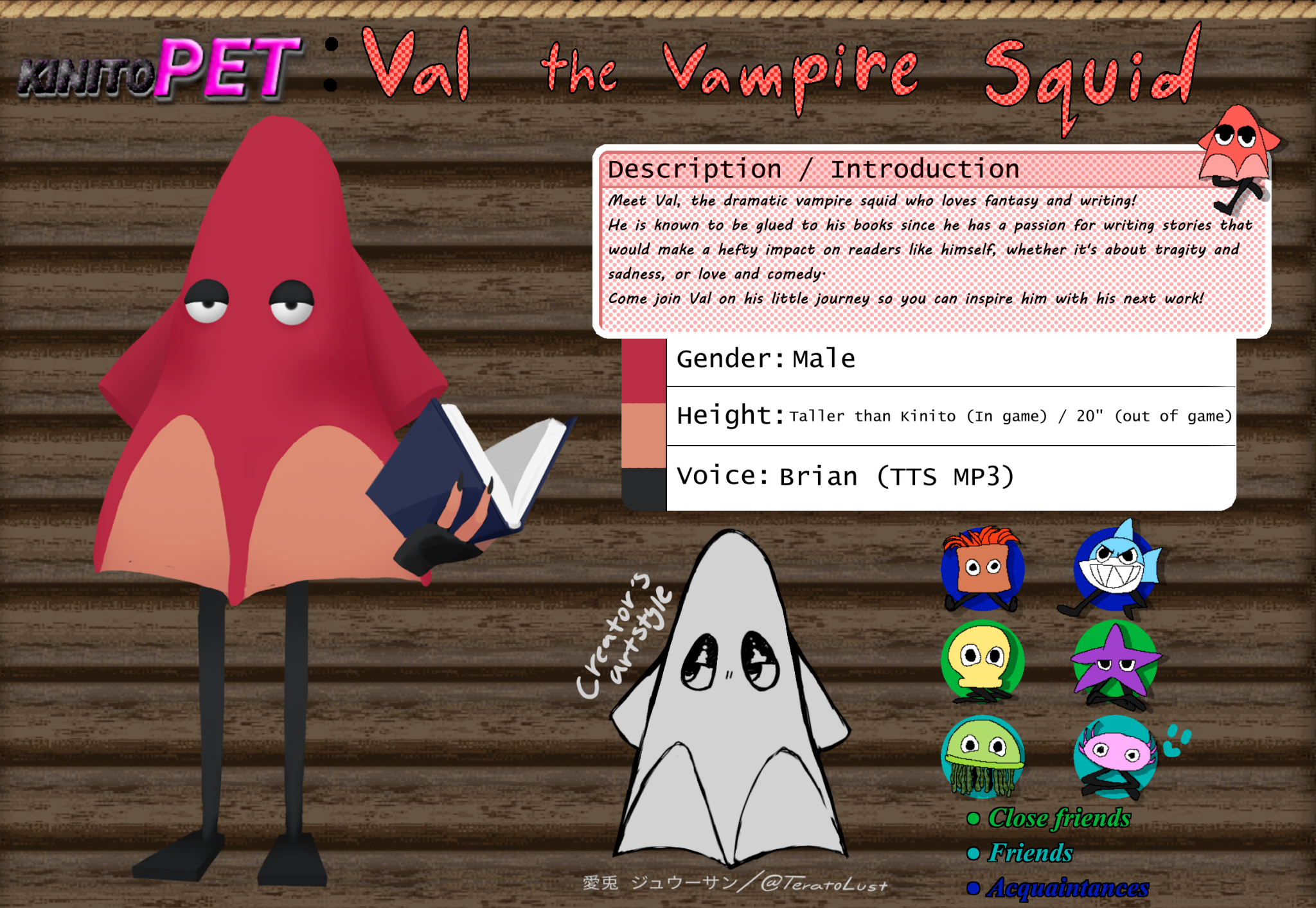 TERA is somebody who sees Kinito as some nerdy lil dude in some idiot's PC that they invaded who struggles with social communications (mostly on knowing how to properly develop a healthy relationship with someone in a slower pace)They mostly teases him with their comments and while watches him forcing his bond towards The owner (who's they may or may not be interested in being his 'best friend' due to his demeanor), but they do express some care towards him, due to him being sweet, anxious af, and felt really invested with his weird unhinge charm about his character.They also noted the fact that he's also slowly returning some sass (and a little bit of saltiness) in his responses the more they butts in with his actions, which will eventually creates some form of bond with one another without the need for Kinito in forcing the relationship to exist.-(Funny note to some random person who's thinking of this: Their whole developing thing does not all happen in the Owner's PC nor happen while they're online. They do go into the internet world like usual, the PC is just where they met.)